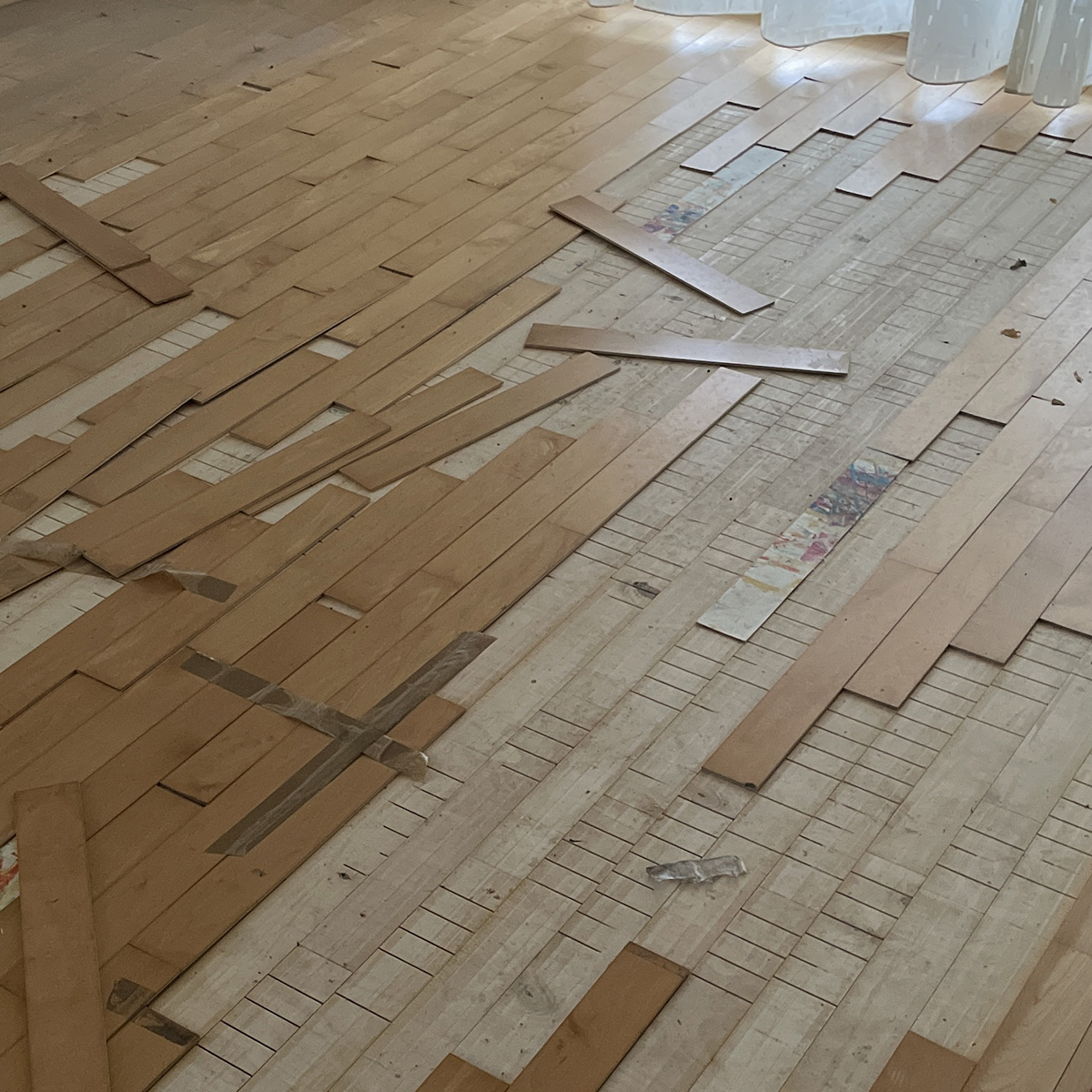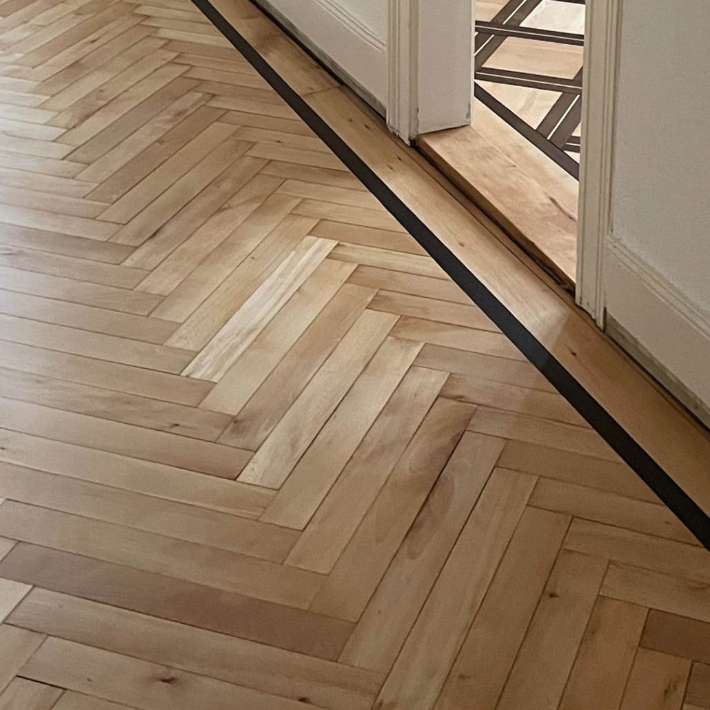 Jetzt erstrahlen die antiken Böden aus Mittelfriesparkett und Fischgrat wieder in neuem Glanz – ein Stück Geschichte, das dank handwerklicher Präzision weiterlebt.